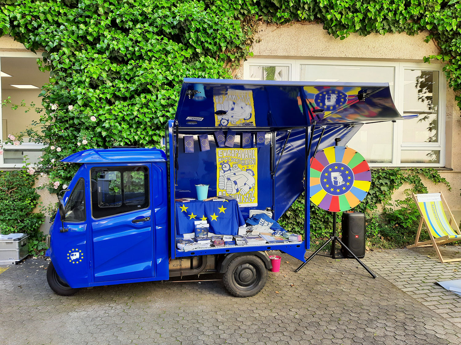 Am 15. April macht das fahrende Demokratie-Labor zwischen 16.00 und 18.00 Uhr im Hinterhof der Bibliothek Station. Neben spannenden Mitmachaktionen für Groß und Klein informiert Europe Direct München im persönlichen Gespräch über Europa und die Europäische Union. Das Europa-Mobil macht erlebbar, dass Europa mehr ist als nur ein Kontinent – es ist unsere gemeinsame Zukunft.